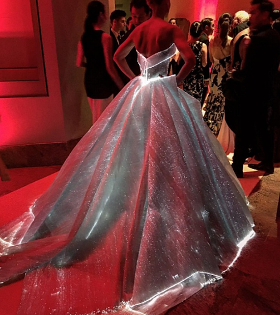 해당 드레스를 제작한 디자이너 잭 포즌은 “기술과 판타지 사이의 마법의 순간”을 표현하고 싶었다고 밝혔다.