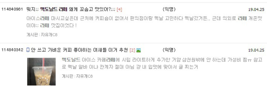 작성자 A씨는 “커피 좋아하는 사람들이 맥도날드 가는이유” 라는 제목의 글로 많은 이들의 궁금증을 유발시켰다.