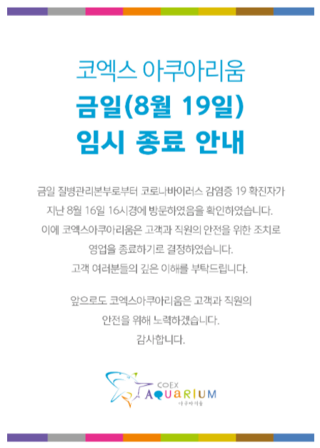 캐리비안베이에 이어 서울 코엑스 아쿠아리움도 코로나19 확진자가 방문했다.