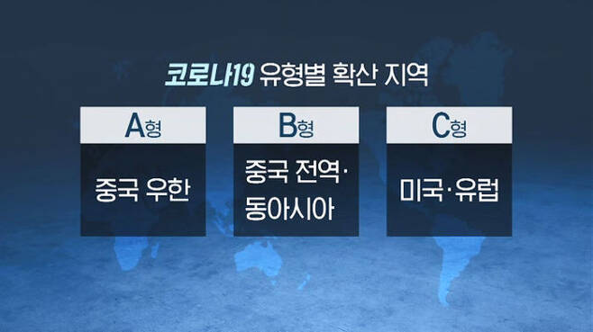 전 세계 코로나19 바이러스는 3종류로 나뉜다.