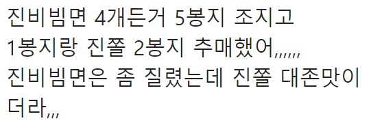 그 주인공은 바로 출시된지 3주 된 ‘진 비빔면’이다. 기존 비빔면들을 모두 누르고 엄청난 인기를 차지하고 있는 진 비빔면. 네티즌들의 꿀팁 또한 이어지고 있다.
