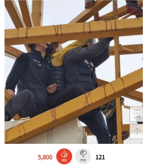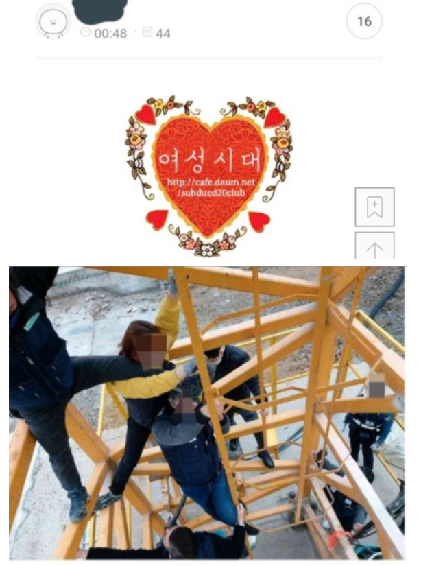 여성 노조원이 우기고 억지로 올라가려다가