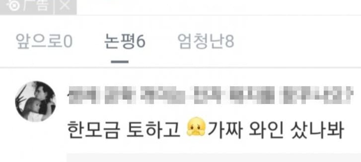 이를 본 중국 누리꾼들은 “한모금 먹고 토 했다”, “가짜 와인 샀나 봐”라고 말했다.
