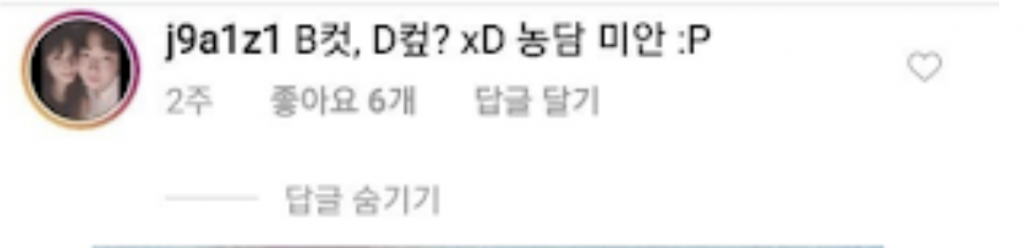 SNS에서 한 누리꾼이 여자아이돌에게 ‘B컵, D컵? xD 농답 미안’