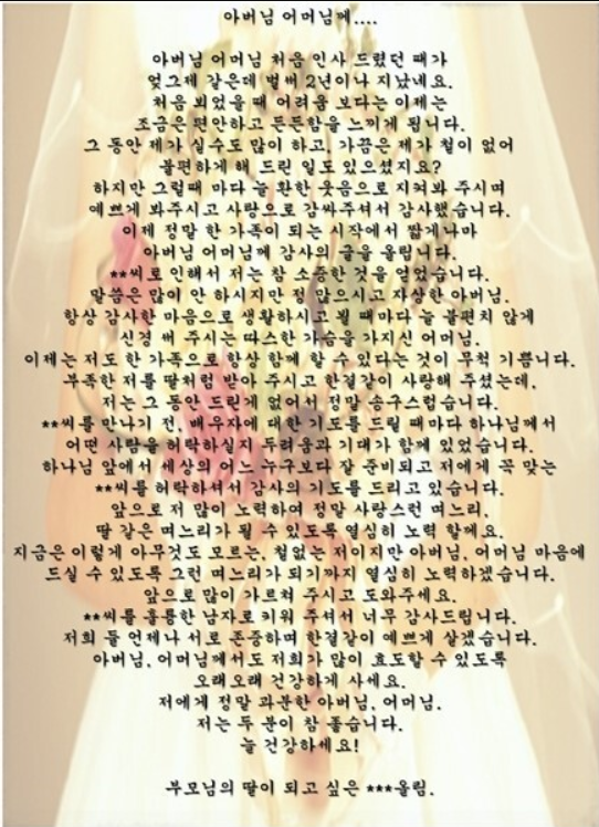 작성자 A씨는 “사랑 받는 며느리가 되기 위한 애교예단+압화편지” 라는 제목의 글로 많은 이들의 궁금증을 증폭시켰다.