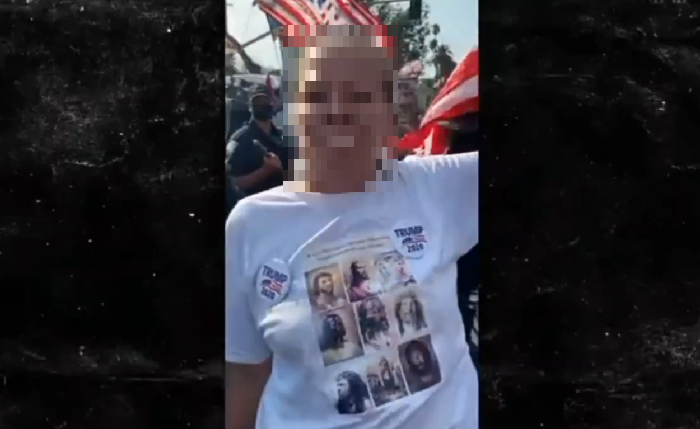 해당 영상은 25일 트럼프 캠프 집회에서 촬영된 것으로 자신이 칼라라고 밝힌 노년의 여성과 트럼프 반대 시위대로 보이는 동양인 여성이 대치하는 장면이 담겨있다.