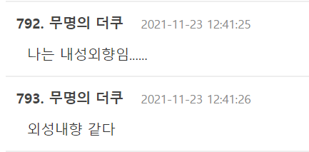 이어서 글쓴이는 “타고나기를 사람들과 어울리는 게 어렵고 쉬운 정도가 내성, 외성의 개념이고, 본인의 관심사가 내면과 외부 중 어디에 있느냐의 개념이 외향, 내향입니다.”라고 말을 덧붙였다.