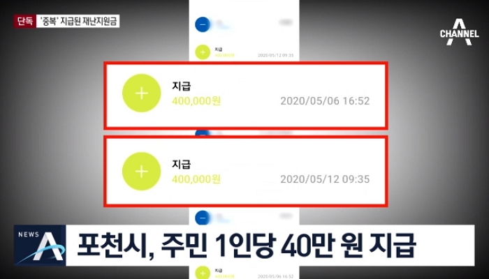 그런데 지난 6일 오후 5시께 40만원을 받은 한 주민은 6일 뒤인 12일 “또 40만원이 입금됐다”고 한다.