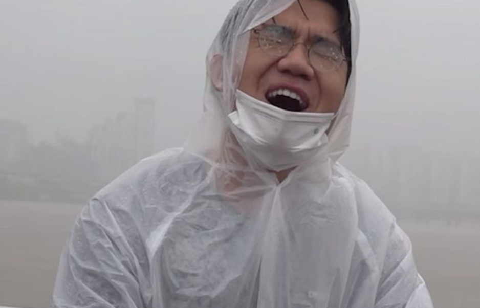 이날 영상에서 보겸은 편의점에서 산 우비를 입고 잠실대교에서 폭우를 맞았다.