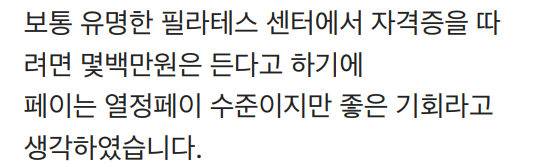 필라테스 강사 자격증은 국가 공인 자격증이 아니라 민간 자격증이다.