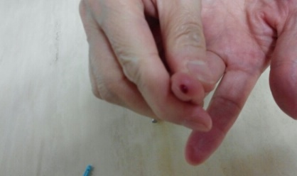 속이 더부룩하거나 밥 먹다가 체하면 바늘로 손가락 끝을 찌르는 것이다.