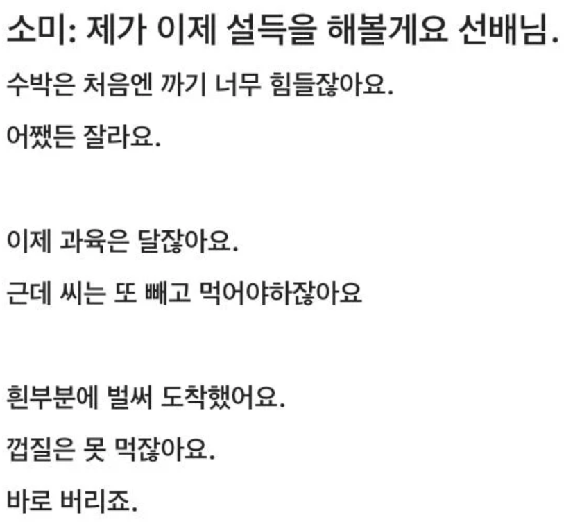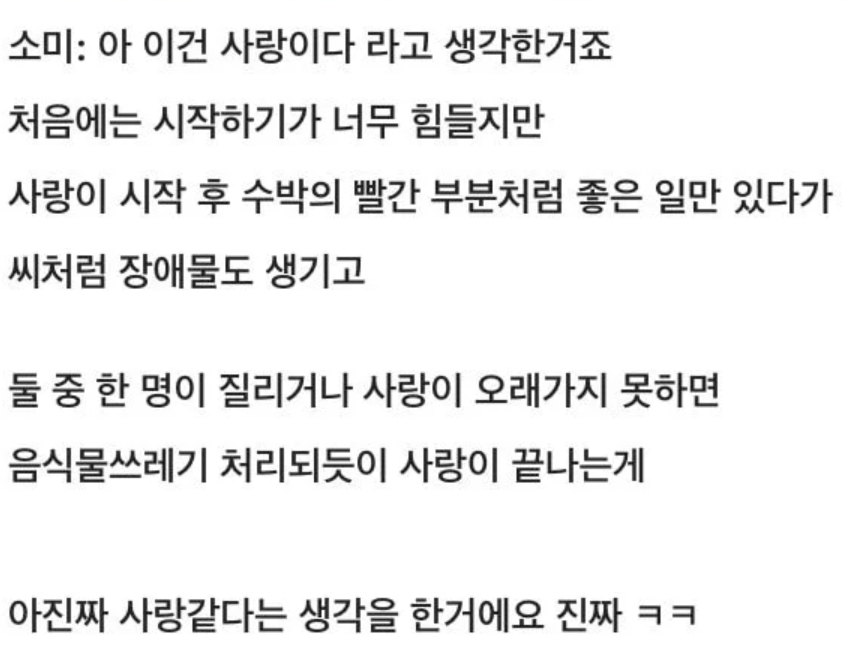 하지만 소미는 유희열의 표정을 보고 “제가 이제 설득을 해볼게요 선배님”이라고 말한 뒤 수박송에 대해 설명했다.