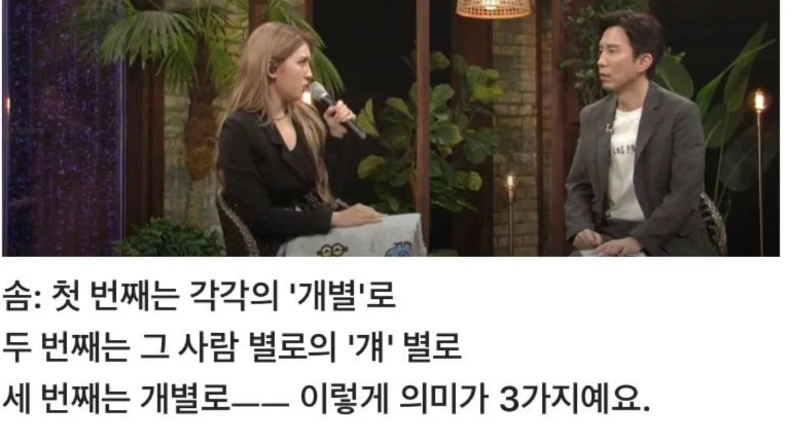 이에 신난 전소미는 두번째 곡인 개별로는 3가지 중의적인 의미가 있다며 설명하기 시작했다.