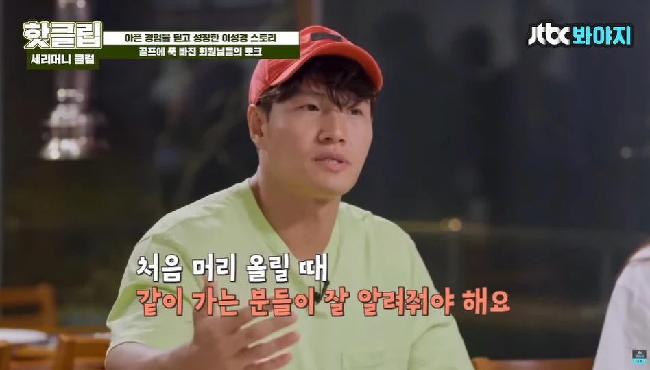 이날 함께 출연한 김종국이 “처음 머리 올릴 때 같이 가는 분들이 잘 알려줘야 한다”며 같이 있는 사람이 초보 골퍼에게 익숙하지 않은 부분을 알려줘야 한다고 설명했다고 한다.
