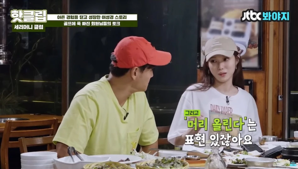 이어 이성경이 “‘머리 올린다’는 게 옛날에 기생하시는 분들이 처음 할 때 머리를 올린다는 그 표현이라고 하더라”고 설명하자, 김종국은 “처음 티에 공을 올리는 게 머리를 올린다는 뜻인 줄 알았다”고 해명하기도 했다.