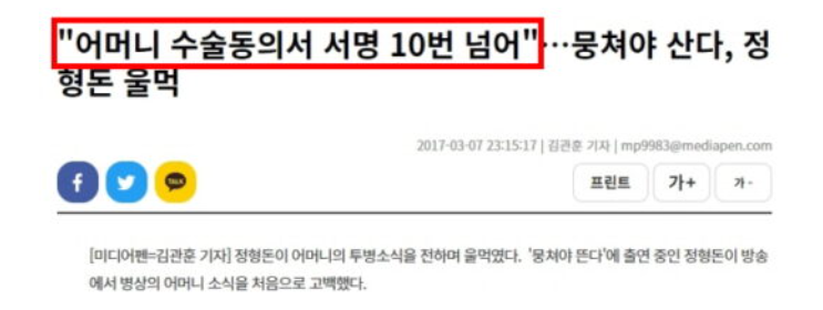 실제로 정형돈의 어머니가 뇌졸중으로 10번의 수술을 견뎠지만 사망 소식을 듣고나서야 정유라는 한국으로 들어왔다.