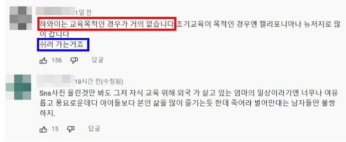 조기교육이 목적이라면 캘리포니아나 뉴저지로 가는 것이 맞다는 네티즌들 의견이 분분하다.
