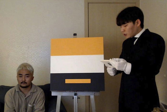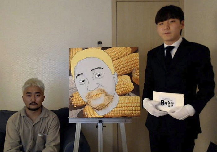 언뜻 국기 같기도 한 이 작품은 위에서부터 유병재의 노란 머리, 얼굴, 검정 수염사이에 누런 치아까지 완벽히 표현해 화제다.