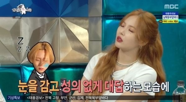 이날 현아는 연인에 대해 “텐션이 많이 나른한 편이다. 그리고 눈을 잘 못 뜬다”고 말문을 열었다.