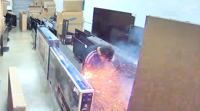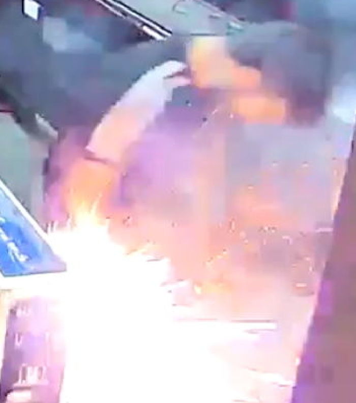 순간 그의 바지에서 큰 불꽃이 튀었다.