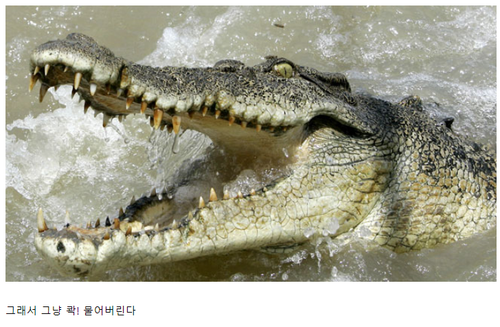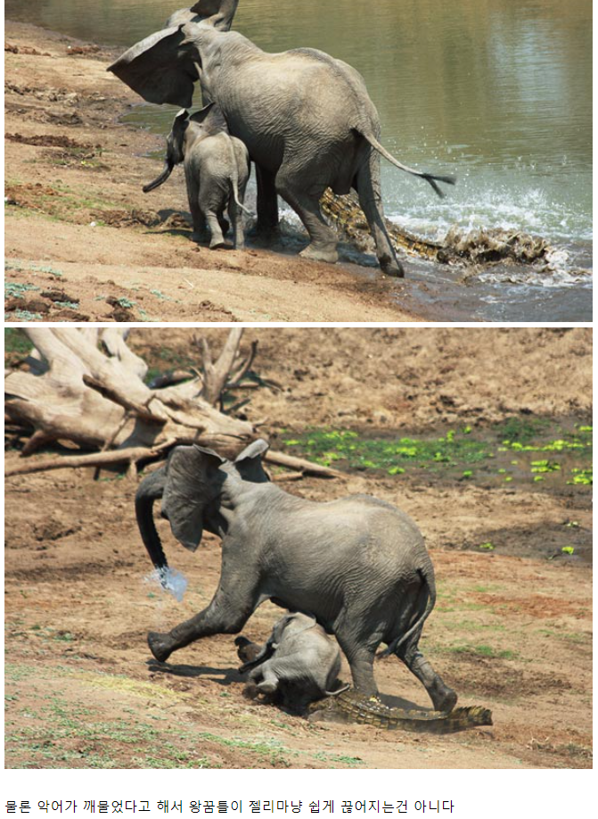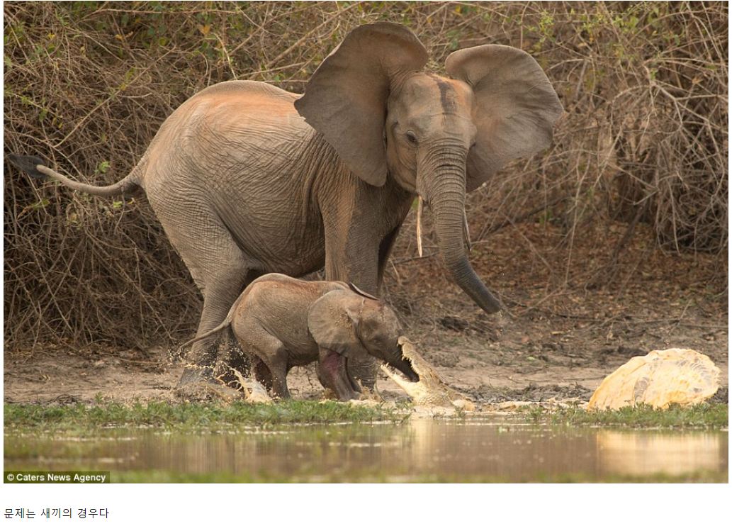 문제는 코끼리가 물에 코를 담글 때 악어 눈에는 이게 동물의 머리로 보여 악어는 코끼리의 코를 물게 된다.