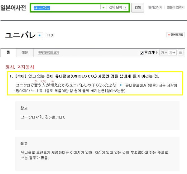 뜻은 ‘유니클로 옷을 입은 것을 들키다’로 해석될 수 있는데, 사실 일본에서 유니클로는 저렴한 브랜드라는 이미지가 강하다.