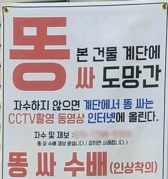 “저희 건물 2층 계단에서 시원하게 ‘대변’ 싼 남자 자수 하세요”.. 현수막 내걸었다(feat.대전) “저희 건물 2층 계단에서 시원하게 ‘대변’ 싼 남자 자수 하세요”.. 현수막 내걸었다(feat.대전) ADVERTISEMENT 대전)"> 대전에서 한 남성이 건물 계단에 대변을 본 뒤 처리하지 않고 달아나는 어이없고 황당한 사건이 벌어졌다. 21일 커뮤니티 더쿠에 ‘똥 싸고 도망간 사람 박제’라는 게시글이 작성되어 게시됐다. 이하 커뮤니티 ‘더쿠’ 해당 게시글 작성자A씨는 는 대전의 한 건물에 내걸린 현수막의 사진을 게재했다. ADVERTISEMENT 현수막에는 “본 건물 계단에 똥 싸고 도망간 (사람) 자수하지 않으면 계단에서 똥 싸는 CCTV 촬영 동영상 인터넷에 올린다”라는 현수막 안에 내용이 담겨져 있다. 이하 커뮤니티 ‘더쿠’ 또, “2021년 9월 29일 오후 4시 56분쯤 본 건물 2층 계단에 똥을 쌌다. 닦지도 않고 도망갔다”라며 자세한 사건 배경과 자세한 남성의 인상착의 등을 공개했다. ADVERTISEMENT 기사와 관련 없는 이미지/구글이미지 이 현수막을 올린 당사자는 21일 조선일보와의 통화에서 “대변을 보고 그냥 가서 내가 직접 치웠다. 아직 자수하지 않았다. 꼭 자수하길 바란다”라고 밝혔다. ADVERTISEMENT 당사자 A씨는 이 건물 3층의 입주자다. 구글이미지 이 남성은 건조물침입죄에 처할 수 있는데, 그 이유는 타인 소유의 건물에 무단으로 들어가 대변을 봤기 때문이다. ADVERTISEMENT 하지만 대변을 본 행위 자체는 노상방뇨에 해당하는 경범죄로 처벌이 비교적 가볍다. [저작권자 VONVON/ 무단복사, 무단전재 및 재배포 금지 (위반 시 법적조치)]