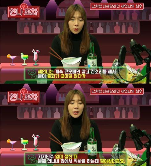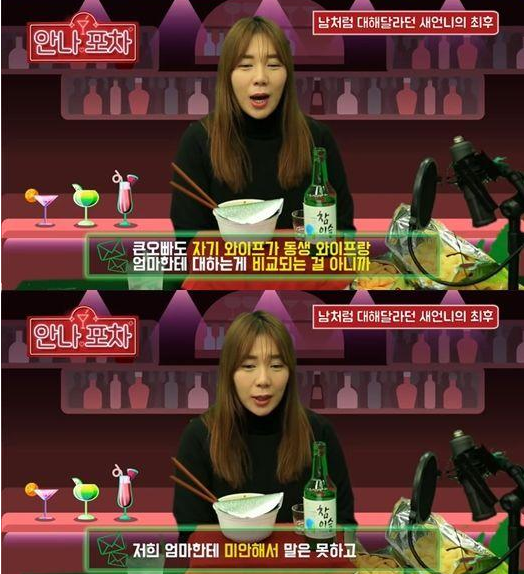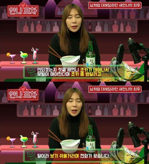 지난 19일, 유튜브 ‘안나TV’의 ‘안나포차’ 코너에서는 ‘딸이 아니라 남’이라고 강조한 새언니의 사연에 대해서 소개를 했다.