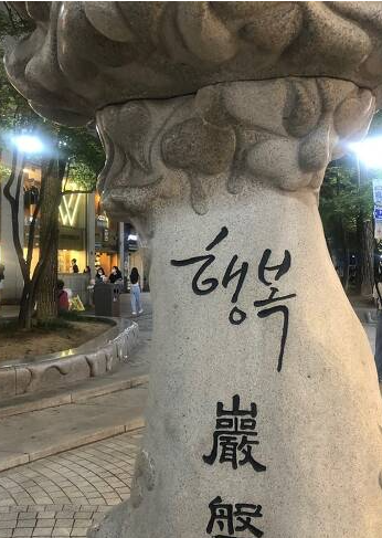 행복로 조각상 앞에서는 버스킹을 하는 아마추어 가수들이 있었고 행인들이 모여 박수를 치며, 그 주변에서는 트럼프카드로 마술쇼를 하는 아마추어 마술사가 행인들의 이목을 끌고 있었다.