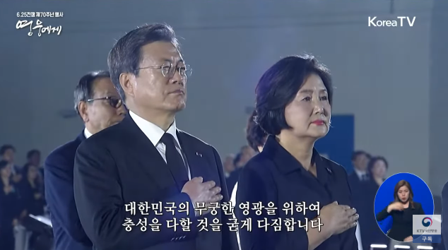 지난 25일 6·25전쟁 70주년 기념행사에 문 대통령 내외와 군 관계자, 주한 외교사절, 정부 주요 인사 등이 참석했다.