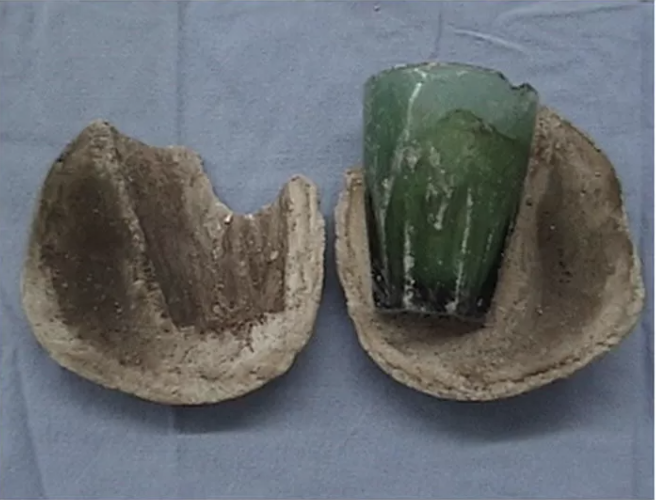 심지어 그 결석을 갈라보니 유리컵으로 보이는 이물질이 있었다.