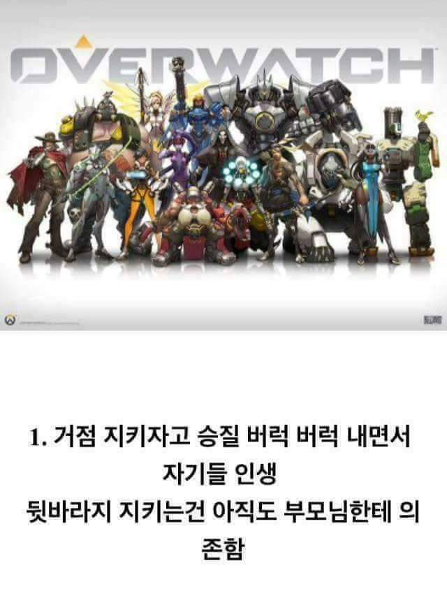 블리자드 사의 ‘오버워치’의 경우에는 ‘거점을 지키자고 승질 버럭 버럭 내면서 자기들 인생 뒷바라지 지키는 건 아직도 부모님한테 의존함’이라며 역시 좋지 않은 평가를 내렸다.