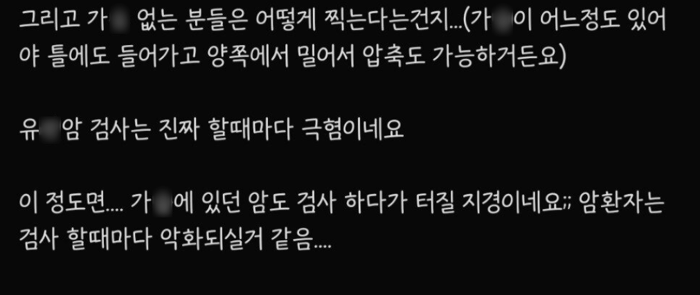 A씨는 “아프고 창피했던 유방암 검사” 라고 전했다.