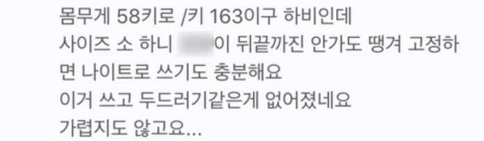 A씨는 “잘 때나 집에 있을 때나 하고 있으면 개!!!!!편함” 라고 전했다.
