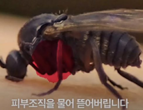먹파리는 날카로운 턱으로 피부를 그대로 찢어버린 후 흘러내리는 피를 먹기 때문에 엄청난 간지러움이 동반한다고 한다.