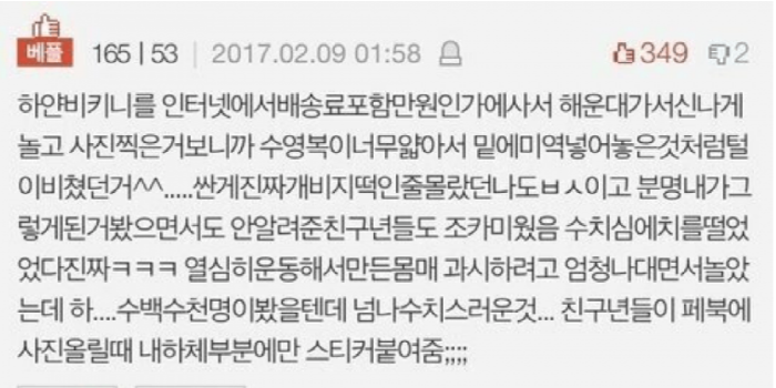 최근 한 온라인 커뮤니티에는 ‘싸구려 비키니의 최후’ 라는 제목의 글이 올라왔다.