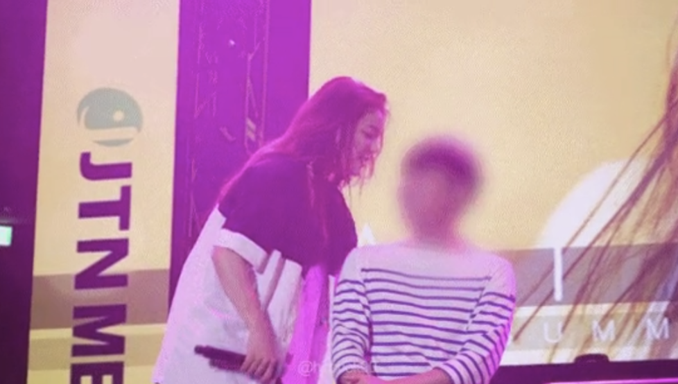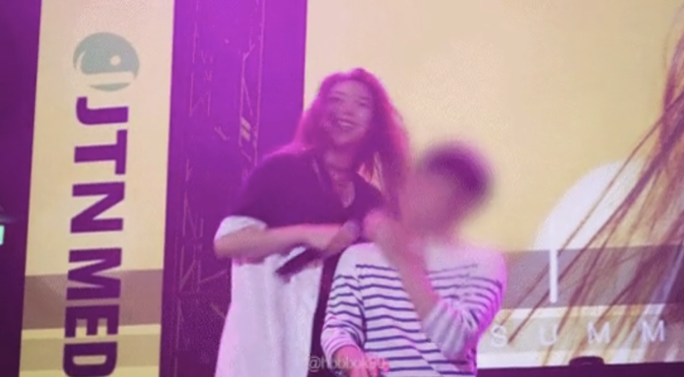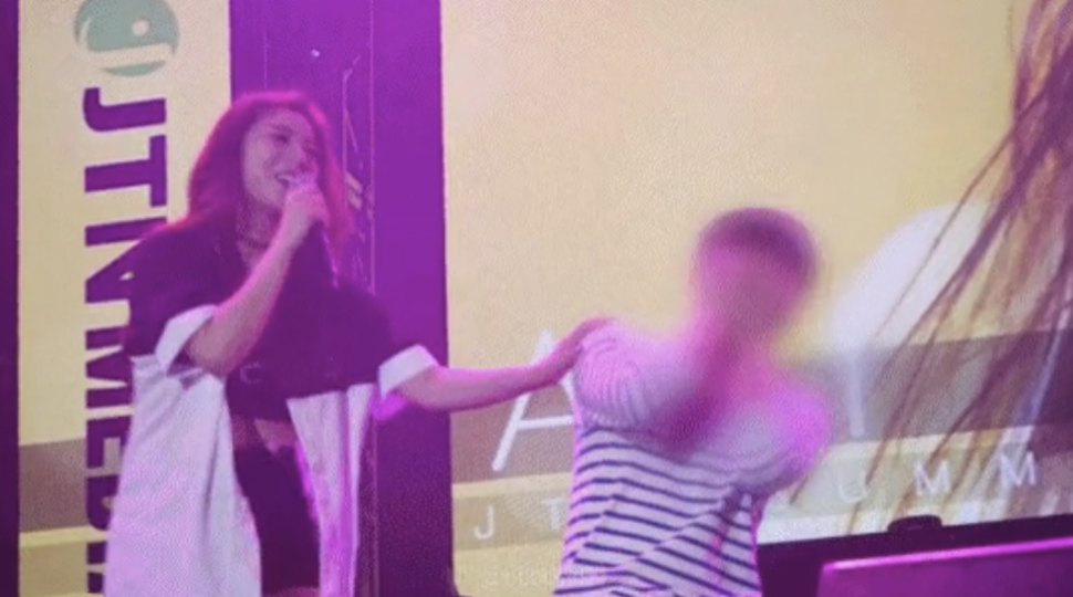 해당 게시물에는 가수 에일리가 콘서트 때 남성을 무대위로 올려 팬서비스를 하고 있다.