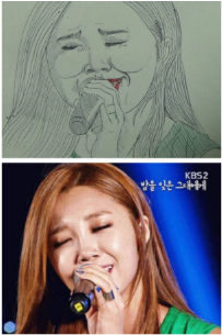 보통 팬아트는 스타의 아름다움을 담으려고 하지만, 몇몇 팬들은 스타들의 굴욕적인 순간까지도 그림에 담고자 하는 왜곡된(?) 팬심을 보여주곤 한다.