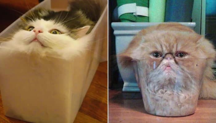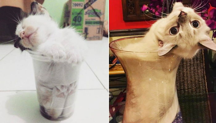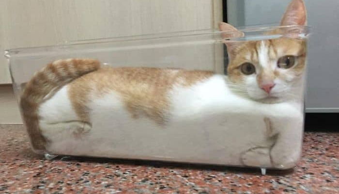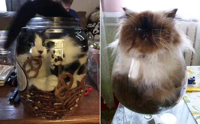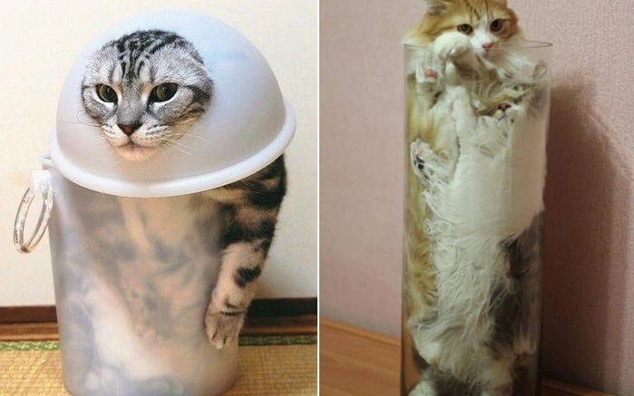 용기에 들어간 고양이가 보기엔 불편해 보이더라도 실제로 몸에 딱 맞는 용기에 들어가는 것을 좋아한다고 알려진다.
