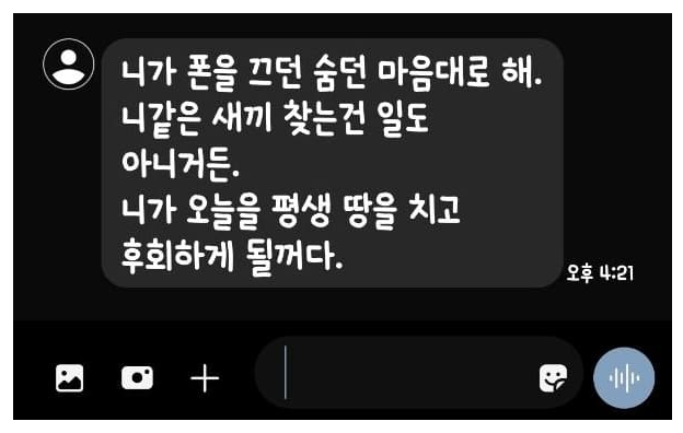 A씨가 사장에게 받은 문자 내용은 “내가 네 밥그릇 끊어줄게”, “쫄았나”, “너는 이제 죽었다”, “폰을 끄던 숨던 마음대로 해라. 너 같은 XX 찾는 건 일도 아니다” 등의 협박성의 문자를 남겼다.