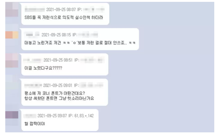 여초 성향의 온라인 커뮤니티뿐만 아니라 남초 성향의 커뮤니티에서도 SBS가 잘못했다는 반응이 주를 이루고 있다.