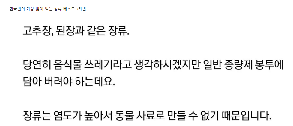 A씨는 “고추장, 된장과 같은 장류” 라 첫 문장을 전했다.
