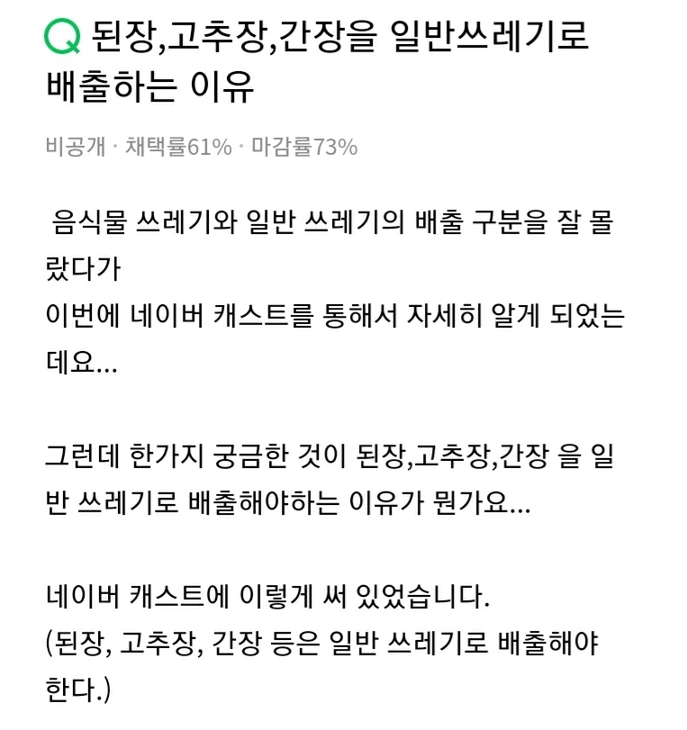 작성자 A씨는 “음식물 쓰레기로 버리면 안 되는 된장, 쌈장, 고추장” 라는 제목의 글로 많은 이들의 이목을 집중시켰다.