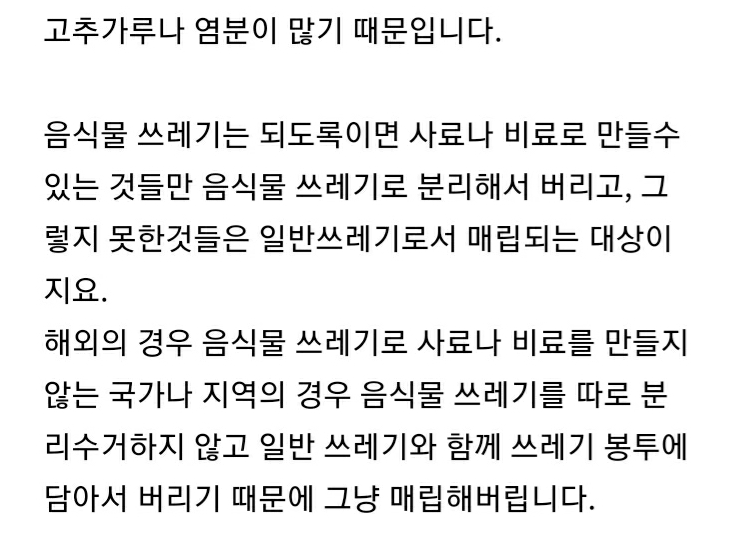 A씨는 앞서 글을 읽는 이들에게 음식물 쓰레기로 버리면 안되는 그 이유를 설명했다.