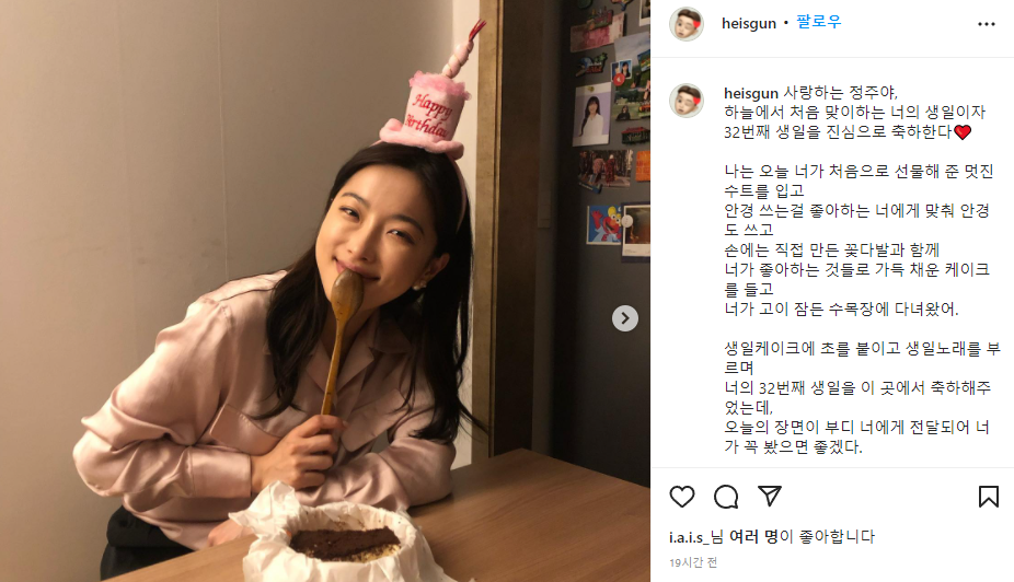 그는 “사랑하는 정주(故 새벽)야, 하늘에서 처음 맞이하는 너의 생일이자 32번째 생일을 진심으로 축하한다”라 글을 쓰기 시작했다.