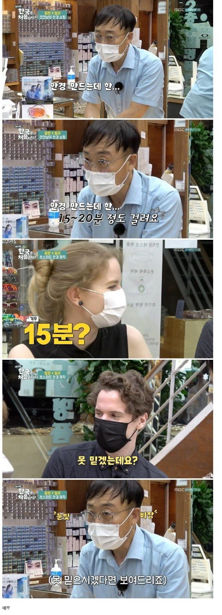 안경을 사러 온 외국인 커플은 안경을 만드는 데 걸리는 시간을 보고 경악을 금치 못했다.