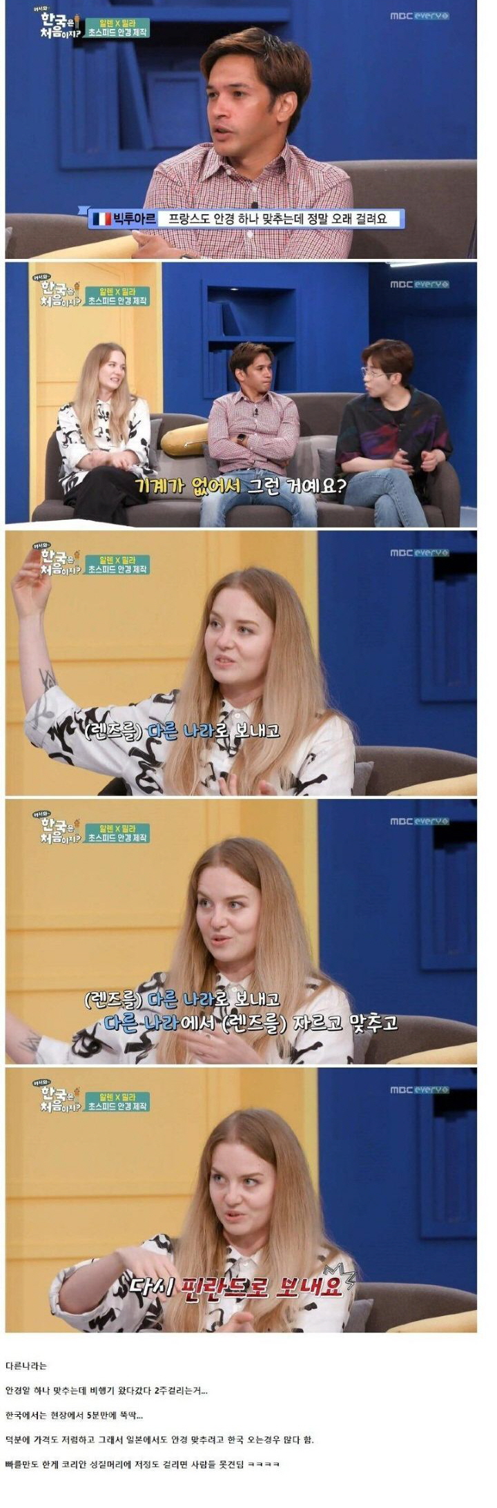 해당 프로그램을 본 온라인 커뮤니티 네티즌들은 “그러고 보니 한국이 참 안경 맞추기 편하기는 합니다. 안경 전문점도 흔하고 바로 검사하고 맞춰주니깐요.”라는 반응을 보였다.