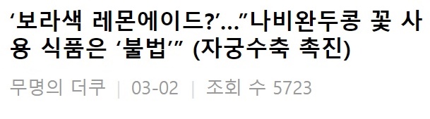 현재 레몬맛나는 보라색 레모네이드 있는 카페 발견하면 먹지말고 바로 신고해야하는 이유 레몬즙 넣으면 보라색으로 변하는 레모네이드 먹어본 사람? 그거 유통 금지 식품임 ADVERTISEMENT ADVERTISEMENT ADVERTISEMENT ADVERTISEMENT ADVERTISEMENT ADVERTISEMENT ADVERTISEMENT ADVERTISEMENT . ADVERTISEMENT ADVERTISEMENT ADVERTISEMENT 레몬즙 넣으면 보라색으로 변하는 레모네이드 먹어본 사람? 그거 유통 금지 식품임 [저작권자 NEWSNACK/ 무단복사, 무단전재 및 재배포 금지 (위반 시 법적조치)]