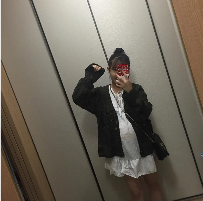 만삭의 몸에도 피팅 모델을 하느라 다양한 의상을 입은 모습이 남다른 패션 감각을 보여주고 있다.
