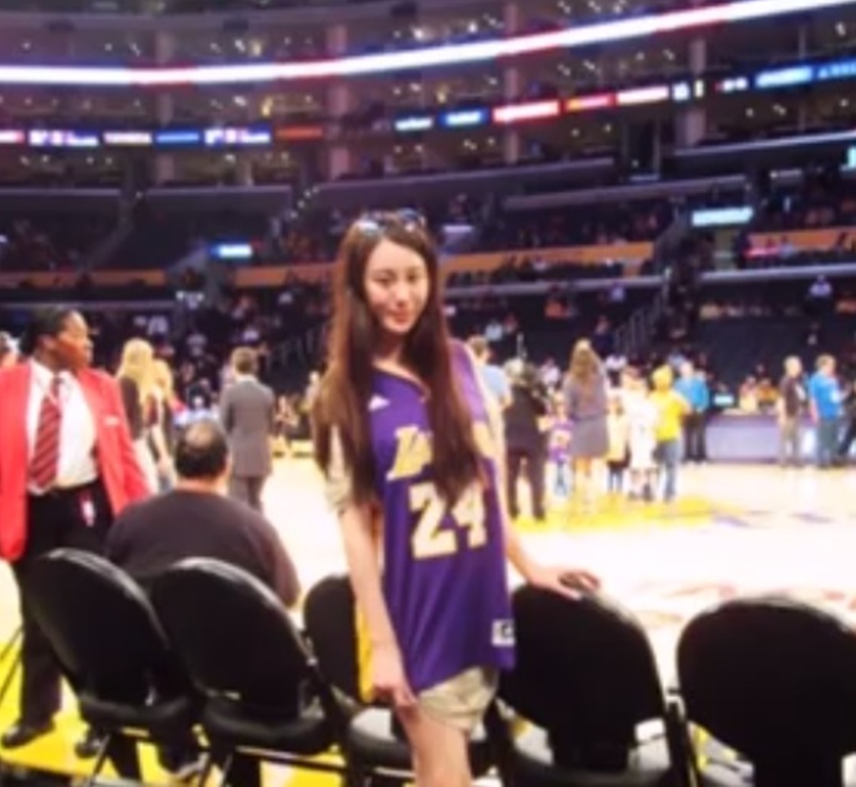그녀는 여행과 스포츠를 좋아하는데 NBA레이커스 경기코트 좌석에서 찍은 사진이라고 한다.